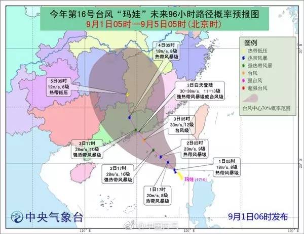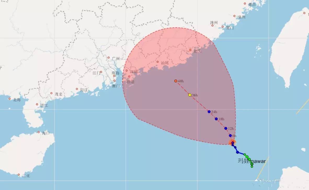 9月1日08時其位于汕尾市東南方向約460公里的南海海面上。隨著爹“帕卡”媽“天鴿”的腳步,“瑪娃”也跑來我大廣東尋親,預(yù)計,其將以10公里的時速向偏西北方向移動,強度加強,并趨向我省東部海面,可能于3日早晨到中午在深圳到汕頭沿海地區(qū)登陸。廣東省重大氣象災(zāi)害應(yīng)急辦公室已于9月1日7時啟動氣象災(zāi)害(臺風)Ⅳ級應(yīng)急響應(yīng)。