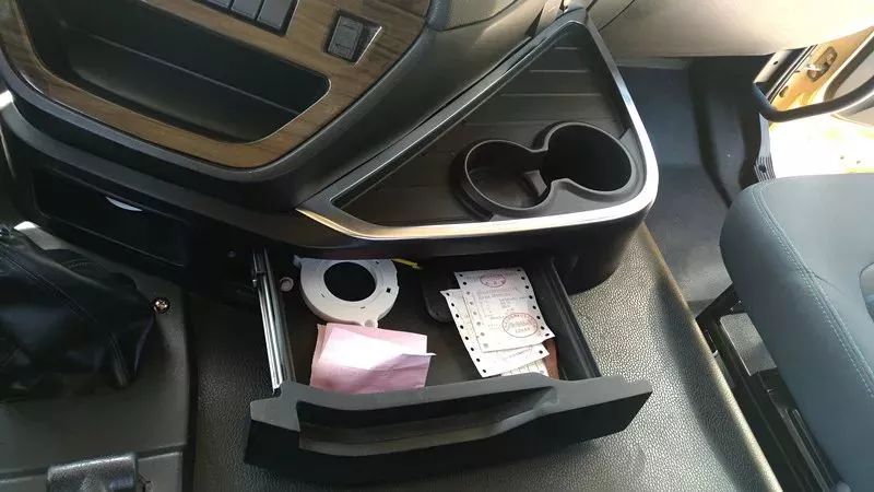 中控臺旁設(shè)有水杯架、抽屜式雜物盒,設(shè)計很貼心,方便駕駛員放置一些隨車物品。