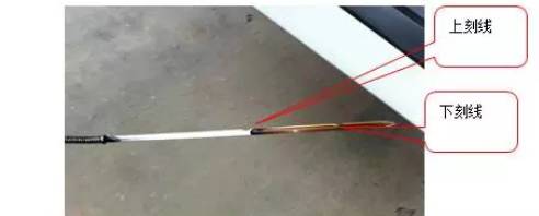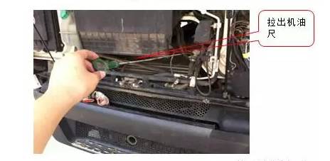 打開駕駛室前面罩,拉出油尺,用潔凈的布將刻度線擦拭干凈,插入到位后再拉出油尺察看液面位置。機(jī)油液面應(yīng)在油尺標(biāo)度刻線范圍之間。不得高于上刻線。