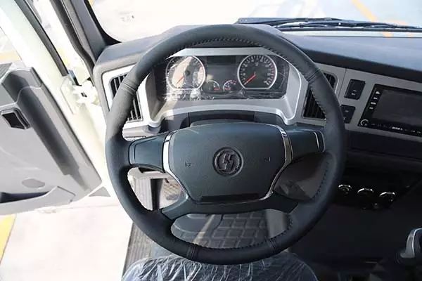 四幅方向盤(pán)與對(duì)稱(chēng)式儀表盤(pán)是成熟的傳統(tǒng)設(shè)計(jì),方向盤(pán)下方設(shè)計(jì)有“空載、重載”多功能節(jié)油開(kāi)關(guān),經(jīng)濟(jì)實(shí)用。