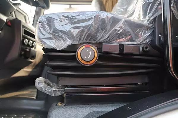 L3000駕駛室內(nèi)上方還加設(shè)有多種儲(chǔ)物空間,空間利用恰到好處。主駕駛員座椅為液壓減震座椅,減震性好,駕駛舒適。